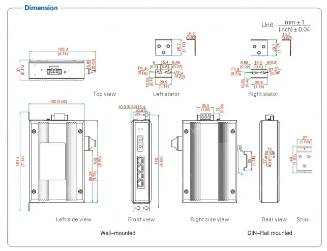 - Input voltage:12/24/48VDC(10.8~52.8VDC), supports reverse polarity protection